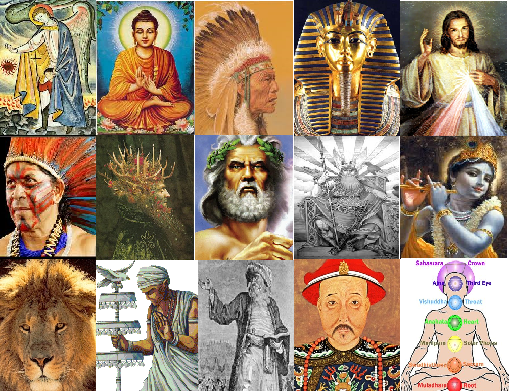 No último capítulo falamos dos sistemas simbólicos que permeiam as culturas, se referindo a um espaço-tempo específico. Porém, alguns desses padrões podem ser encontrados em todas as culturas deste nosso planeta, o que denominamos “padrões universais” ou Arquétipos. Eles existem, como uma experiência subjetiva, em todas as pessoas, culturas e períodos da história. Tente achar algum padrão nas imagens abaixo, referentes a líderes político-religiosos de diferentes culturas: